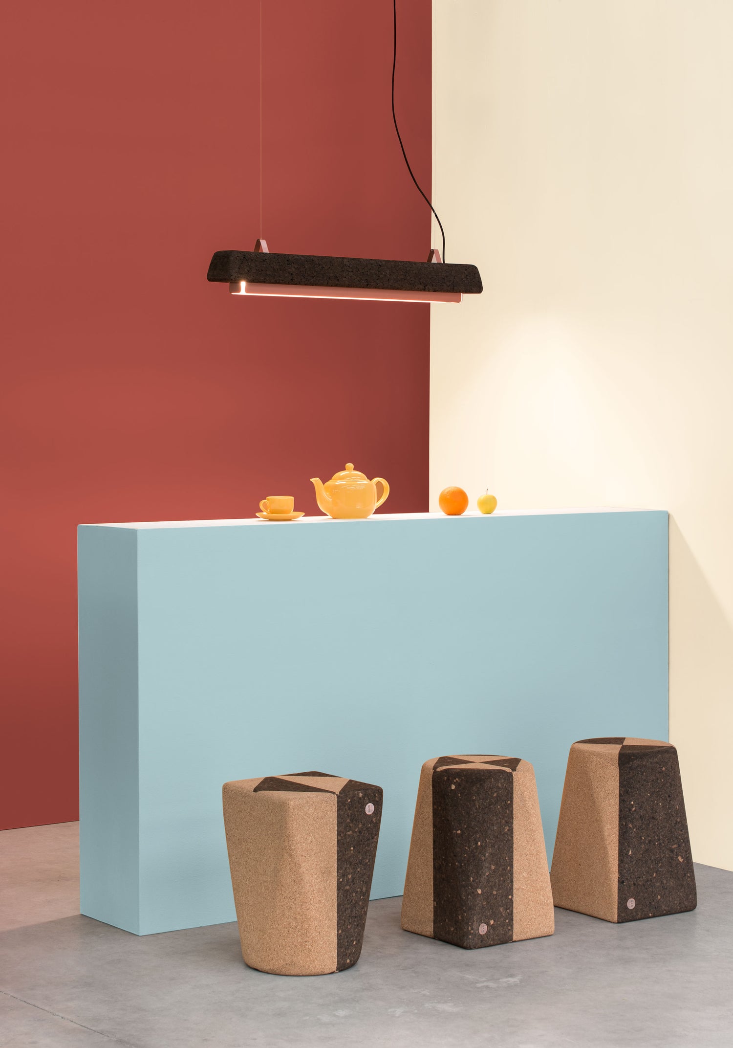 In addition to being a sustainable choice, creating a pendant lamp made of cork and steel that is 100% recyclable can have significant benefits for the user's well-being .