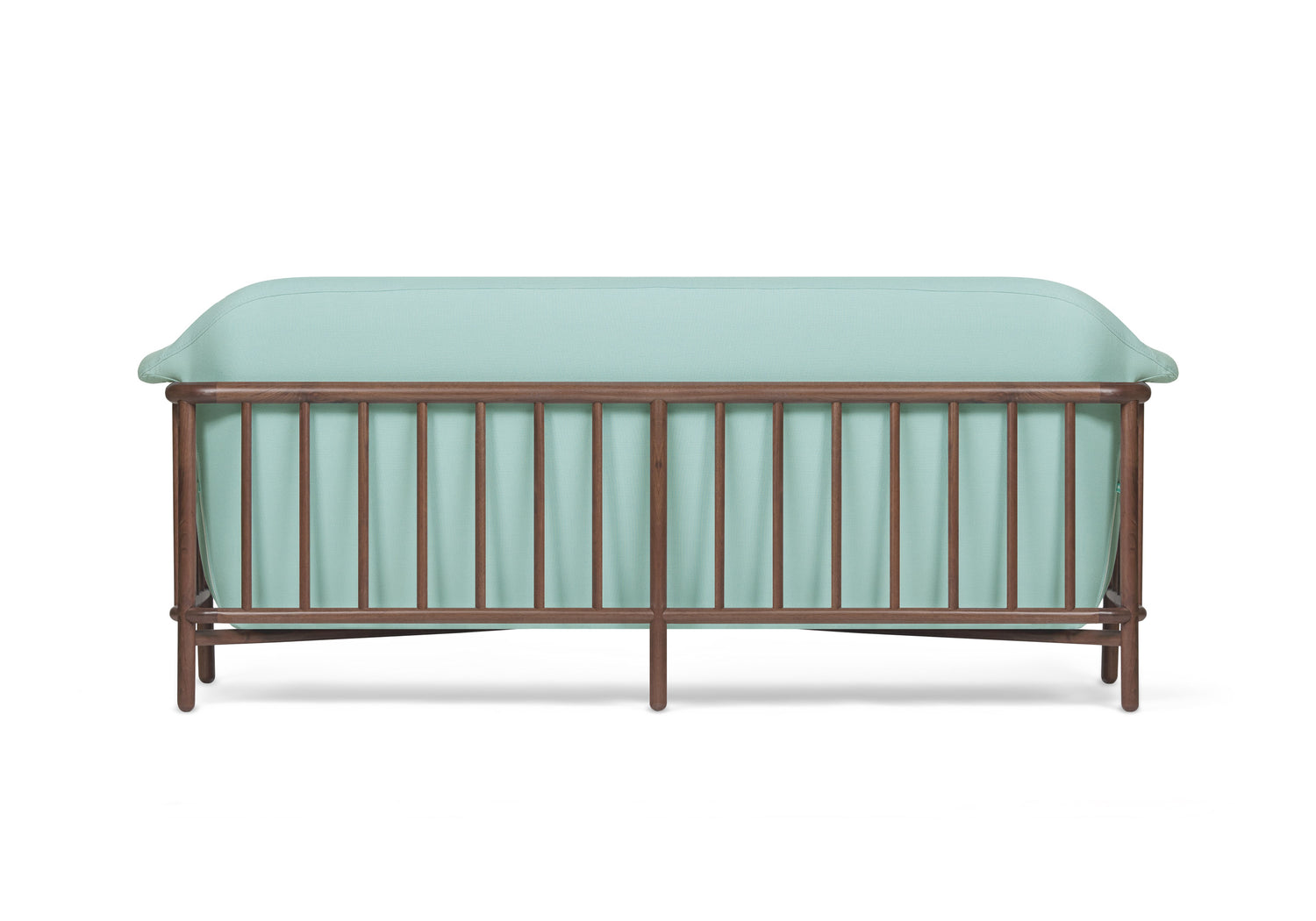 Designed to express serenity through its light curves in the upholstery and its delicately turned wooden structure.