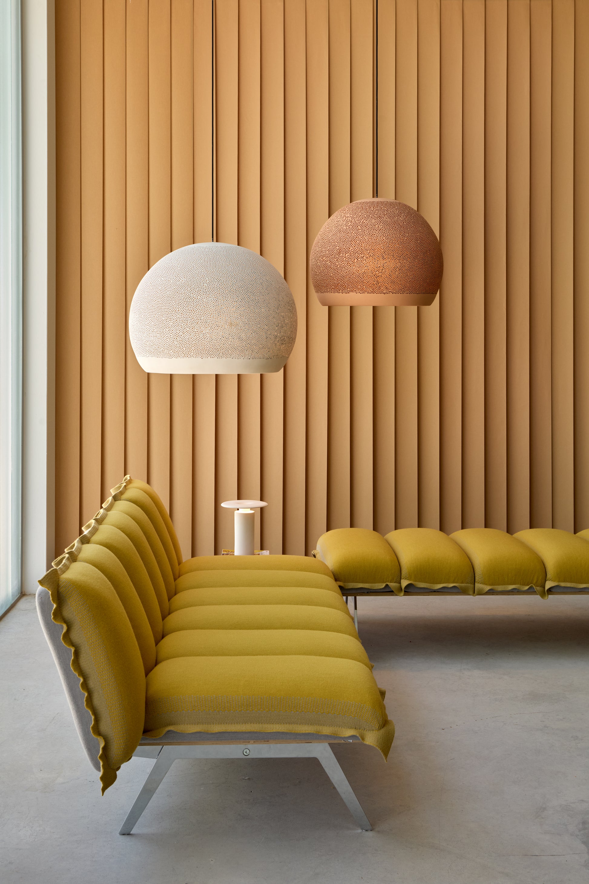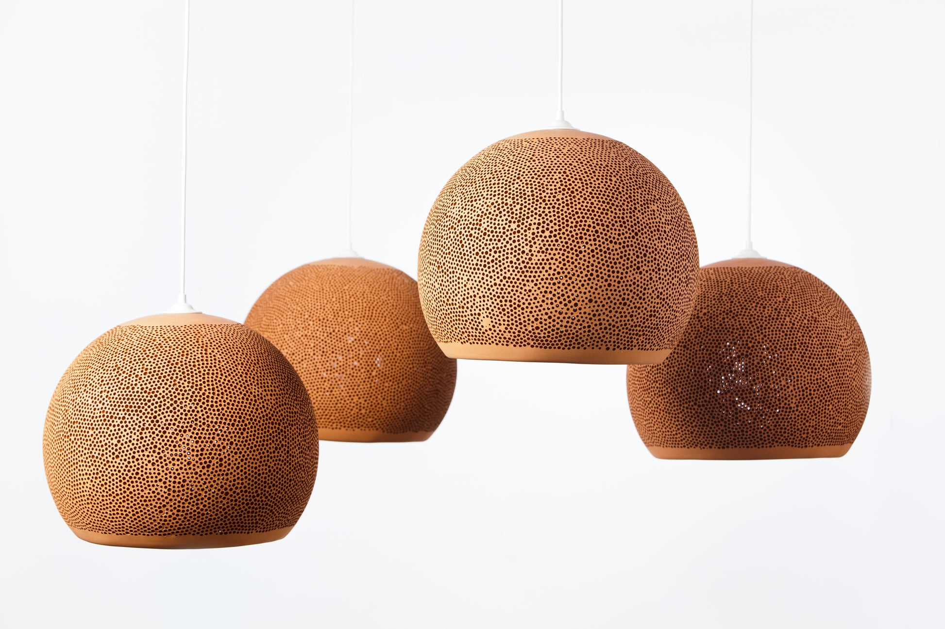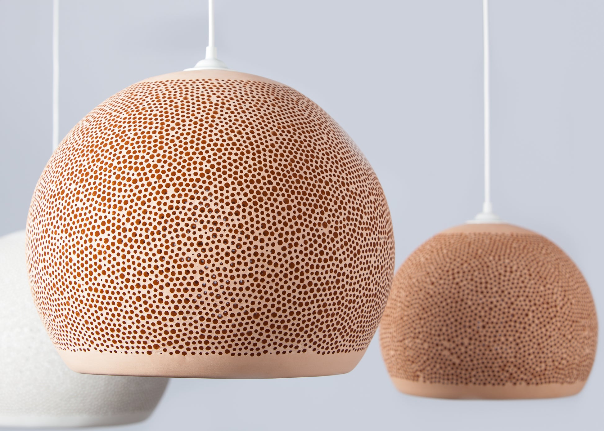 O Candeeiro Suspenso SpongeUP 70 combina design contemporâneo e tradição da olaria.