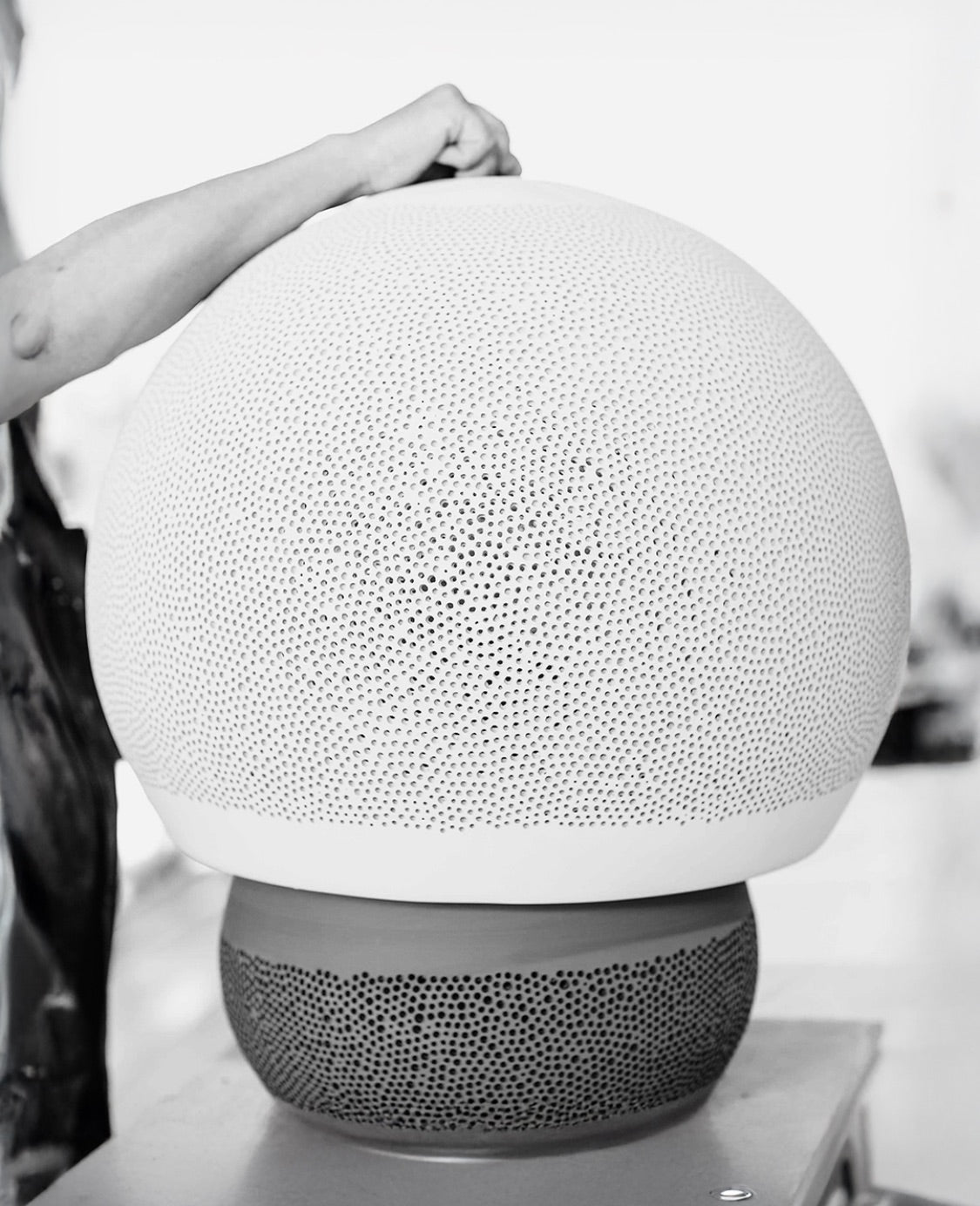 Fiel à linguagem da olaria artesanal, SpongeUp amplia o universo da coleção original com novas proporções e uma leitura mais arquitectónica da luz, pensada para interiores actuais.